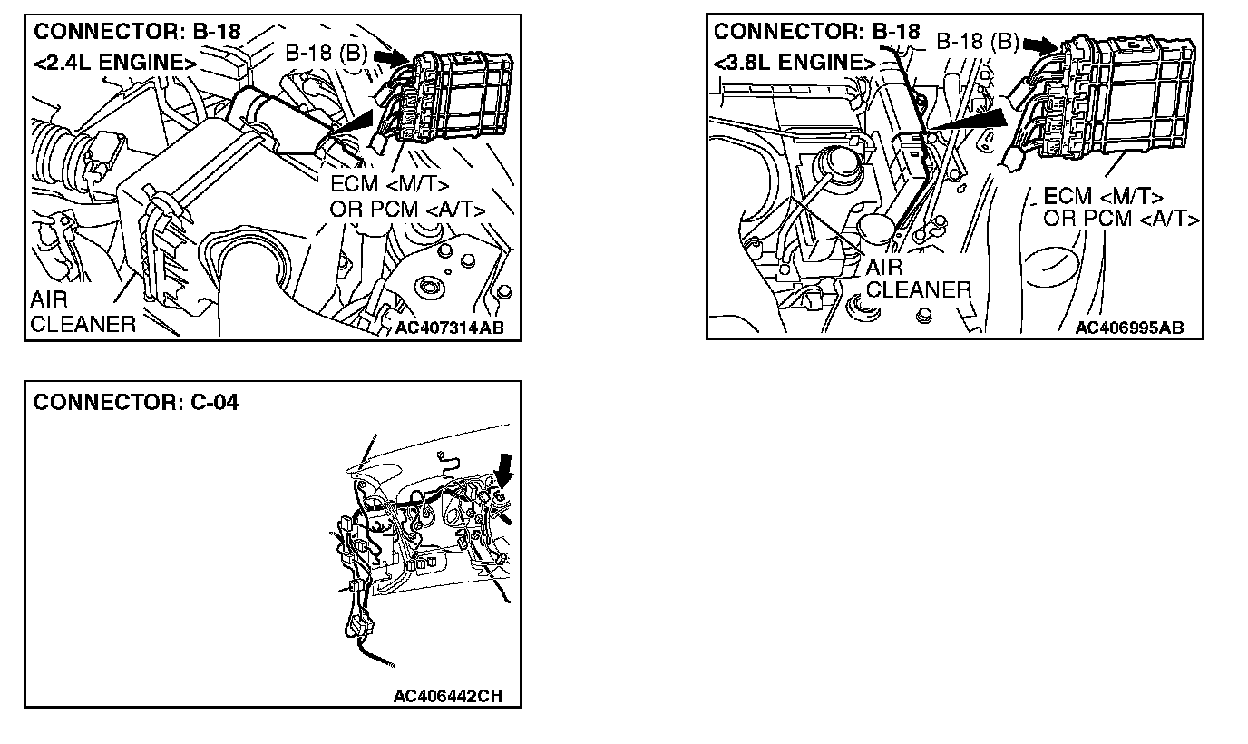 STEP 2. Check the terminator resistor inside the ECM [M/T] or PCM [A/T]. Measure the resistance at ECM [M/T] or PCM [A/T] connector B-18.