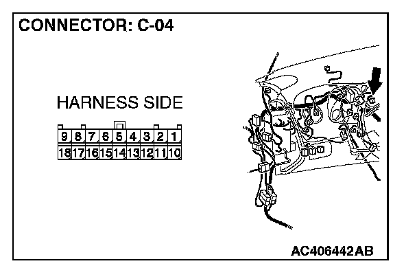 1. Disconnect combination meter C-04, and measure the resistance at the component side of combination meter connector C-04.