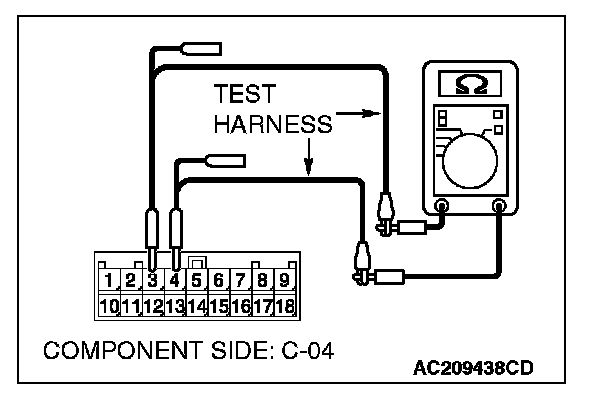 2. Measure the resistance between combination meter connector terminals 3 and 4.