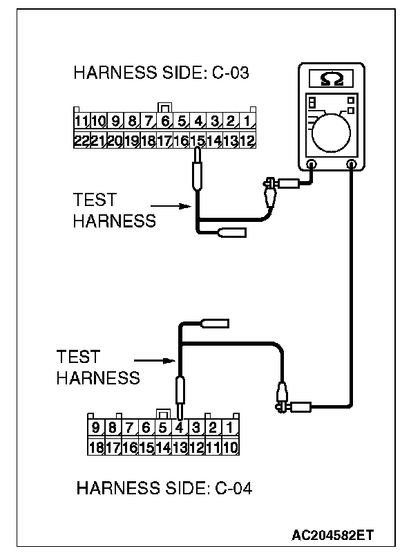 STEP 2. Check the CAN bus lines between joint connector (3) and the combination meter. Measure the resistance between joint connector (3) C-03 and combination meter connector C-04.