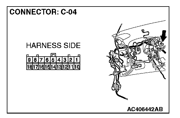 1. Disconnect combination meter C-04, and measure the resistance at the component side of combination meter connector C-04.