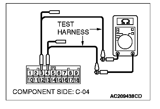 2. Measure the resistance between combination meter connector terminals 3 and 4.