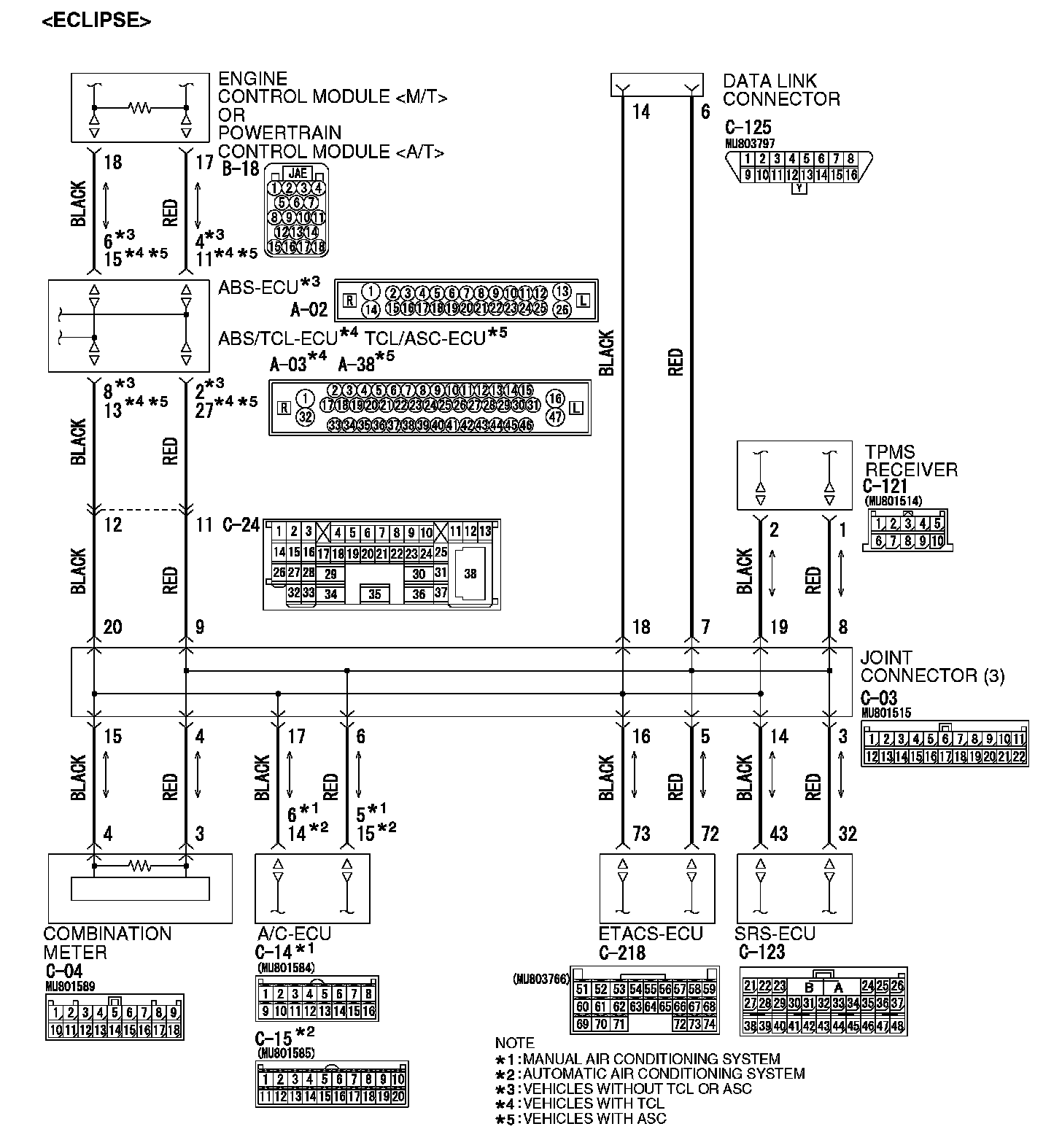 - The connector may be defective [poor connection of joint connector (3) or SRS-ECU connector]