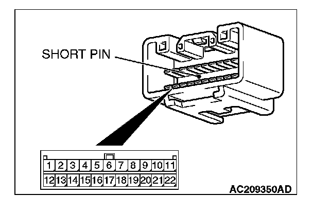 Check the joint connector at the wiring harness side for loose, corroded or damaged terminals, or terminals pushed back in the connector, and also check the short pin behind the connector for corrosion, deformation and delamination.