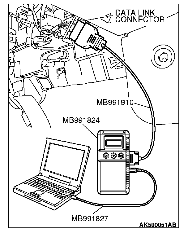 1. Connect scan tool MB991958 to the data link connector.
