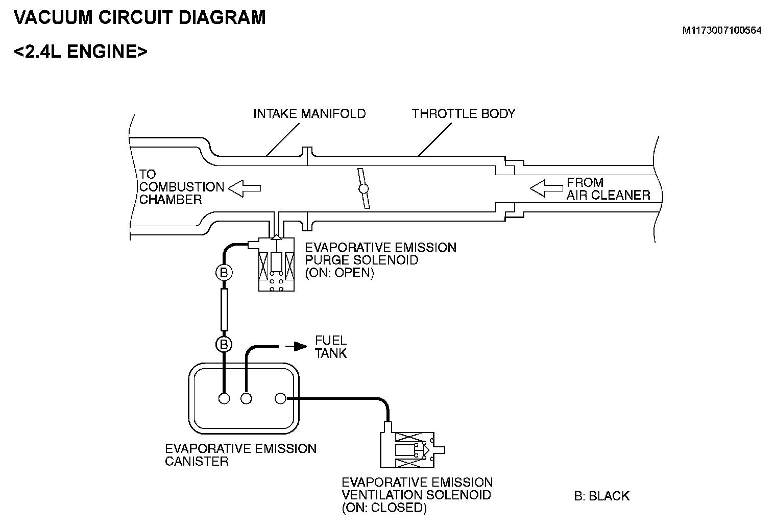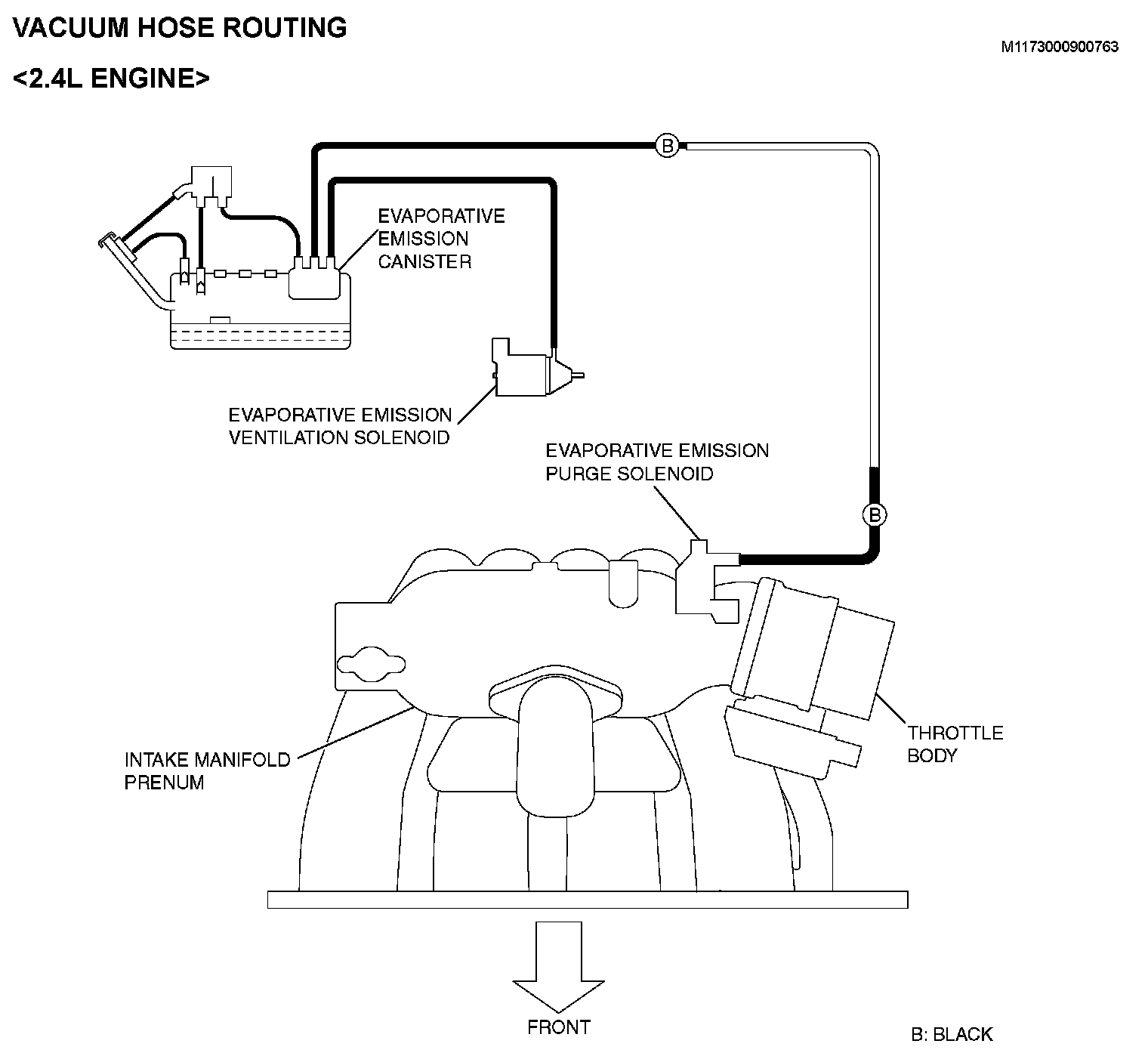 2. Check the connection of the vacuum hoses, (removed, loose, etc.) and confirm that there are no sharp bends or damage.