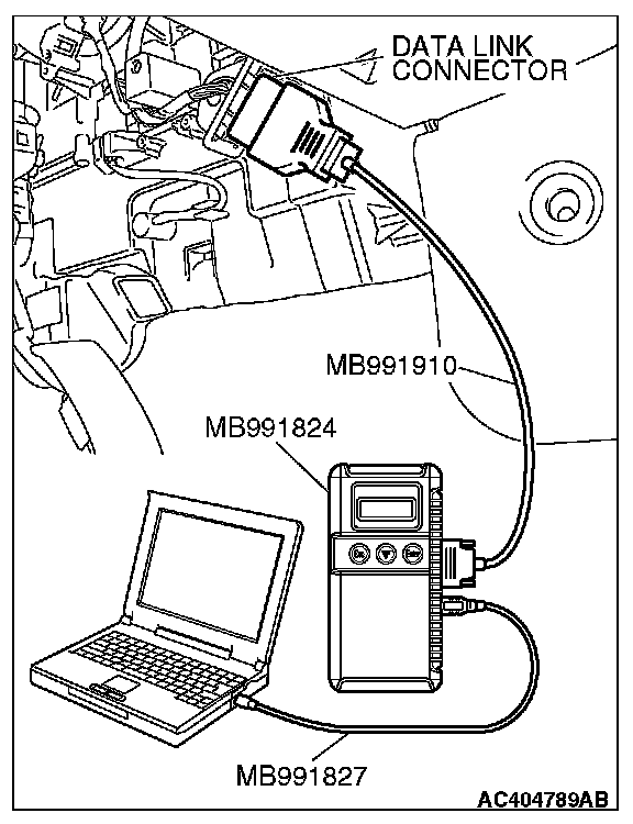 1. Connect scan tool MB991958 to the data link connector.