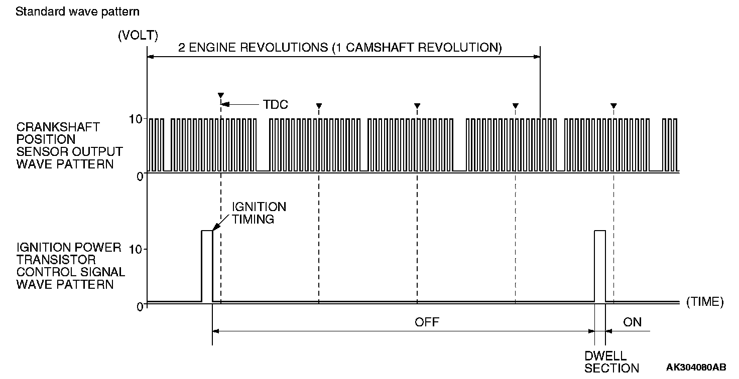 Point: The power transistor control signal (ignition timing) is advanced when the engine speed is increased.