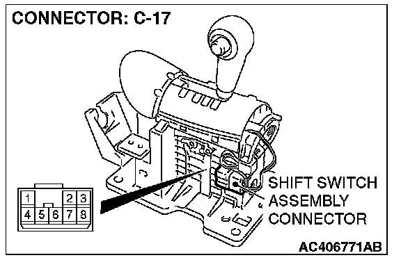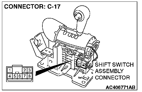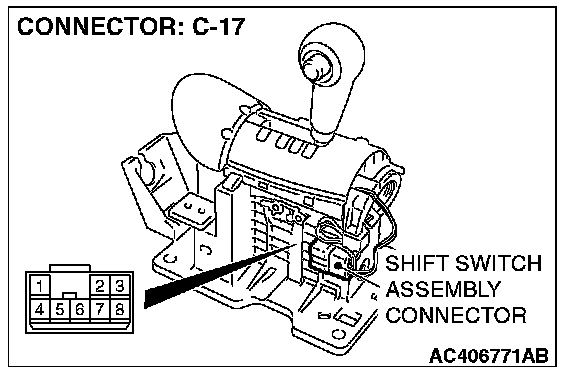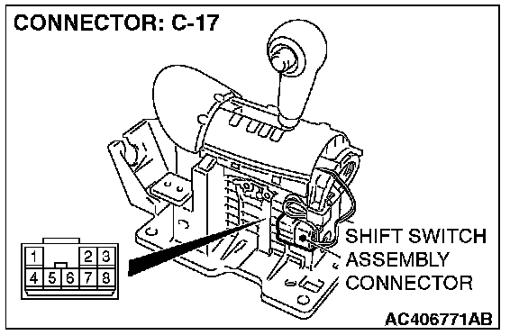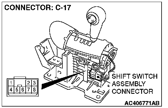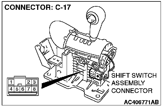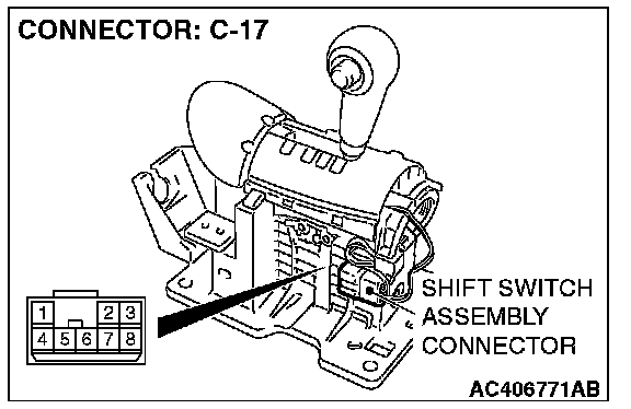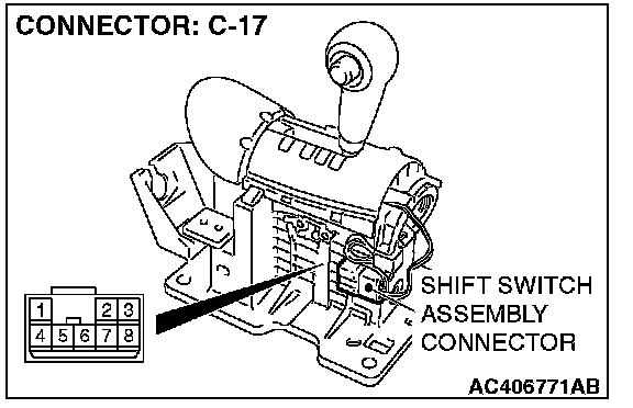 Home >> Mitsubishi >> 2009 >> Eclipse L4-2.4L (4G69) >> Repair and Diagnosis >> Powertrain Management >> Transmission Control Systems >> Testing and Inspection >> Symptom Related Diagnostic Procedures >> Inspection Procedure 15: Shift Switch Assembly System