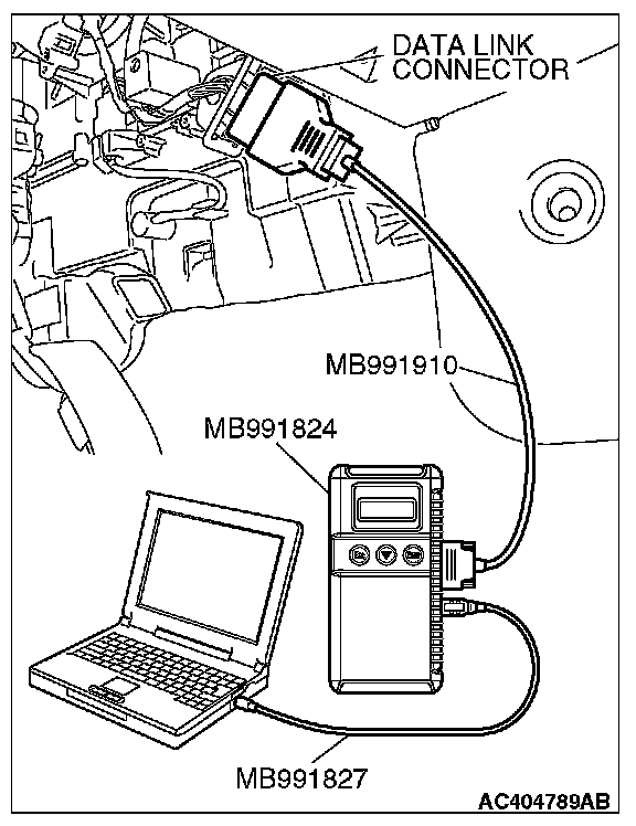 To prevent damage to scan tool MB991958, always turn the ignition switch to the "LOCK" (OFF) position before connecting or disconnecting scan tool MB991958.