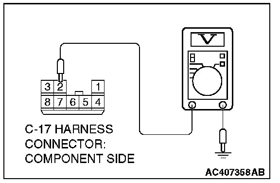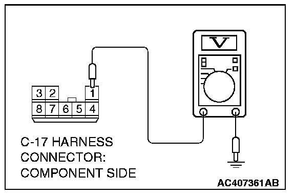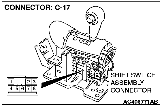 STEP 6. Measure the power supply voltage at shift switch assembly connector C-17.