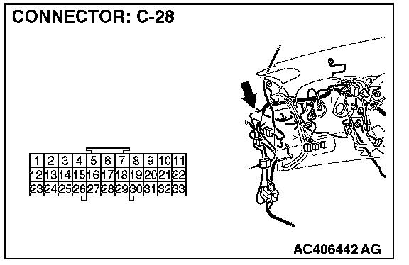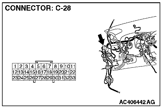 STEP 7. Check joint connector (1) C-28 and shift switch assembly connector C-17 for loose, corroded or damaged terminals, or terminals pushed back in the connector.