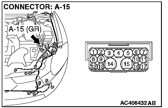 STEP 10. Check intermediate connector A-15 and shift switch assembly connector C-17 for loose, corroded or damaged terminals, or terminals pushed back in the connector.