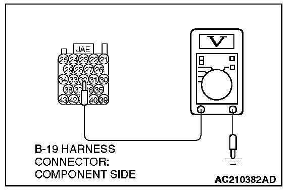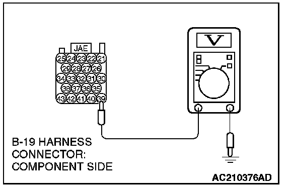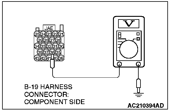 STEP 18. Measure the switch output voltage at PCM connector B-19 by using check harness special tool MB991923.