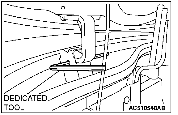 2. Raise the tonneau panel, and insert the dedicated tool into the hinge hole to hold the tonneau panel in place.