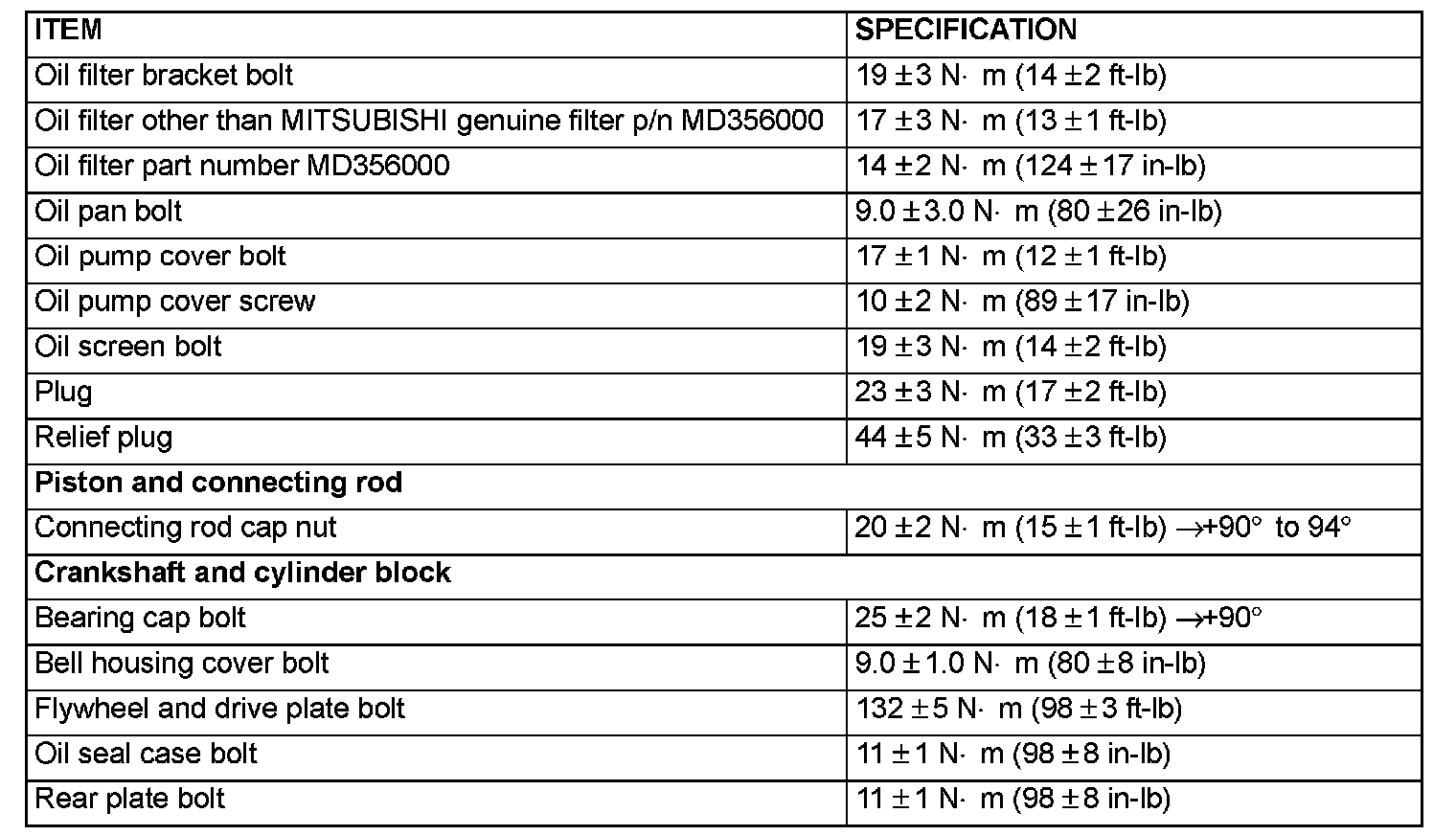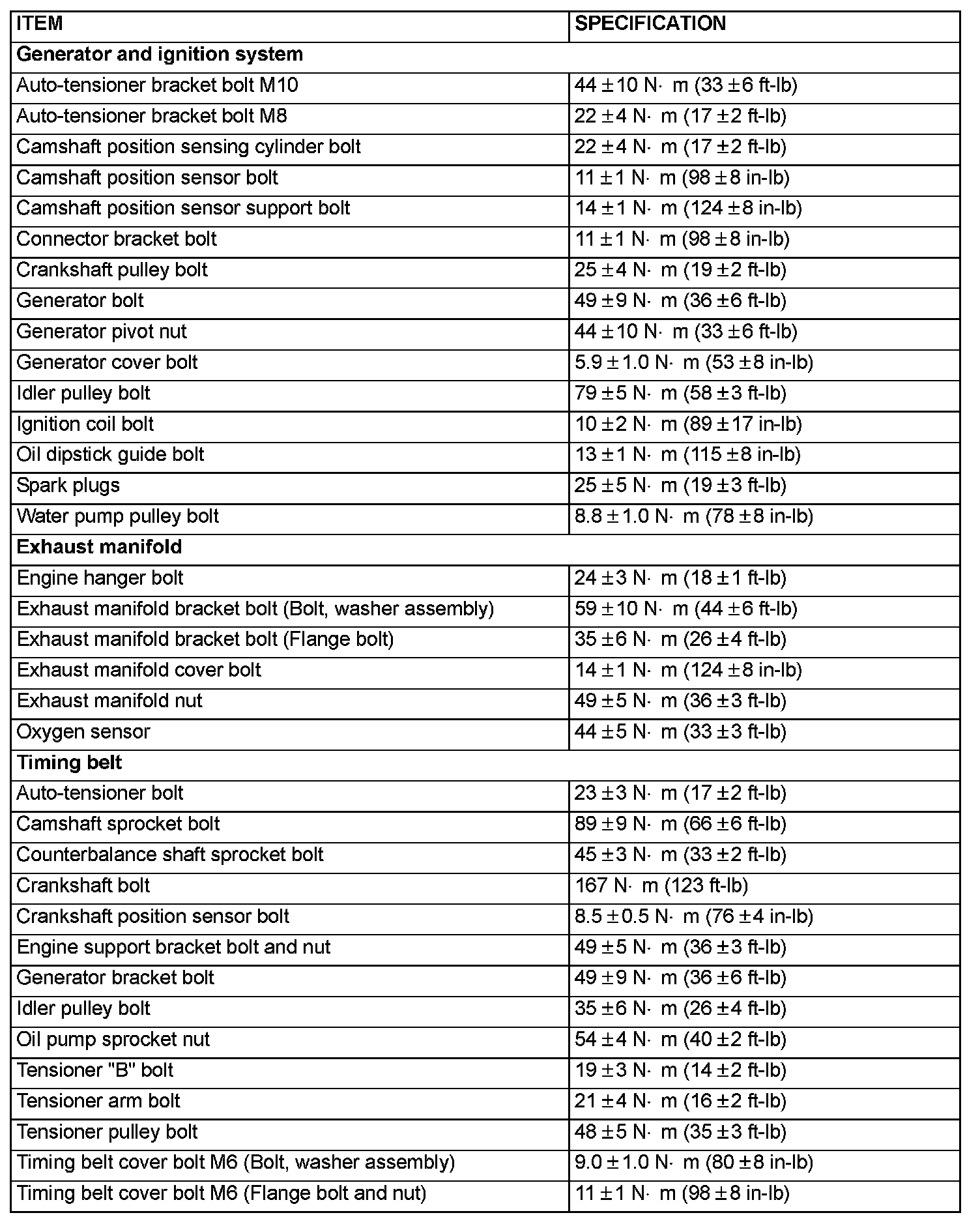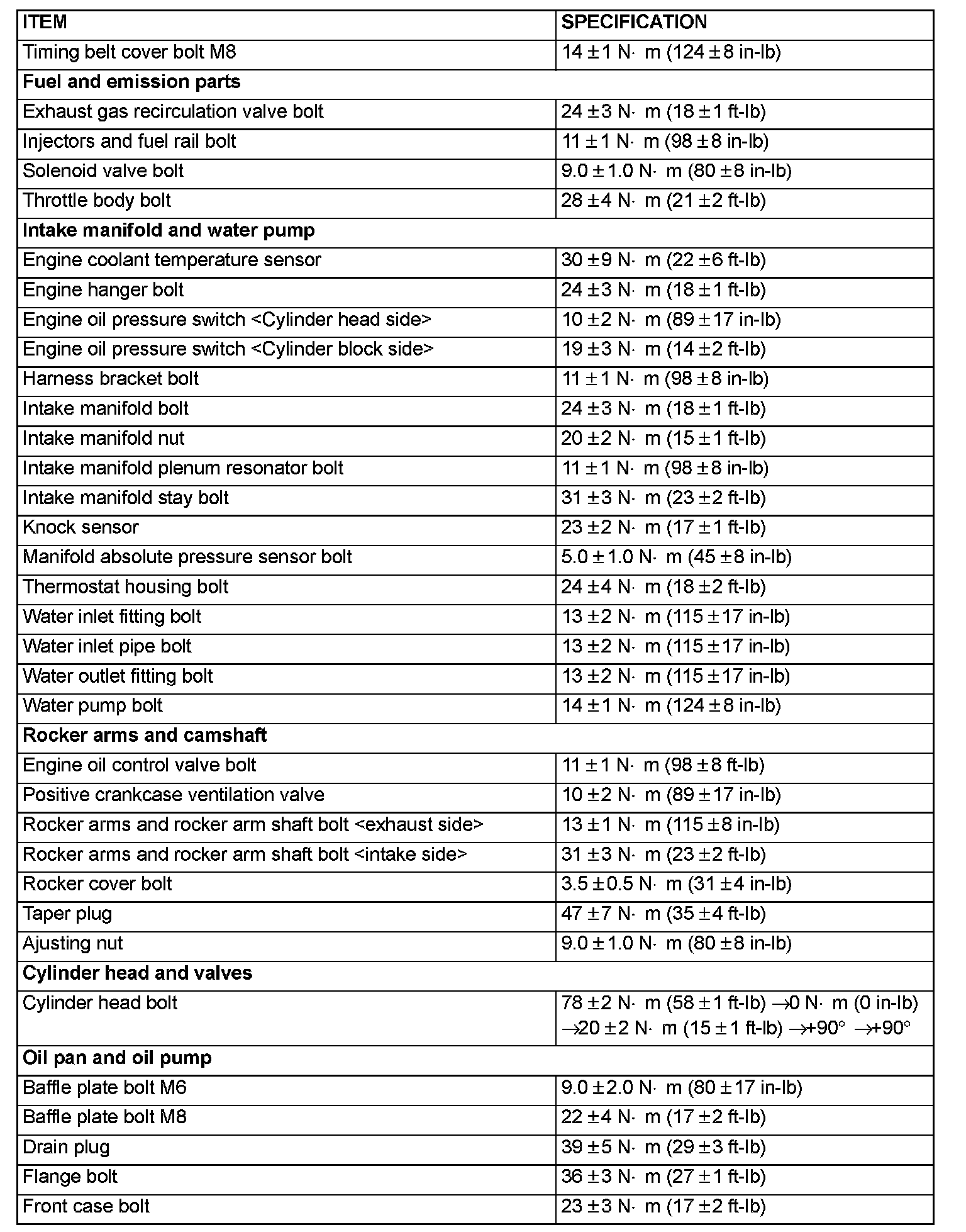 Fastener Tightening Specifications