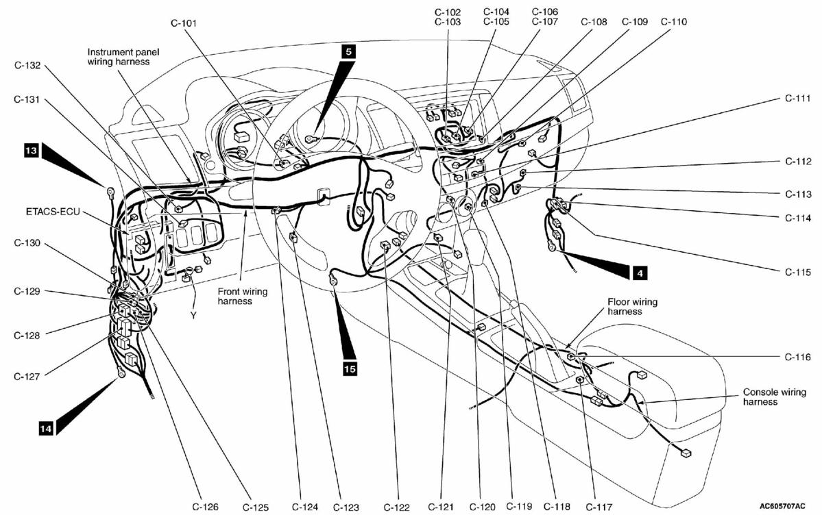 | ETACS-ECU | On rear of junction block, behind left end of dash. See Figure. |