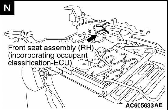 | Occupant Classification-ECU | Under front of front passenger's seat. See Figure. |