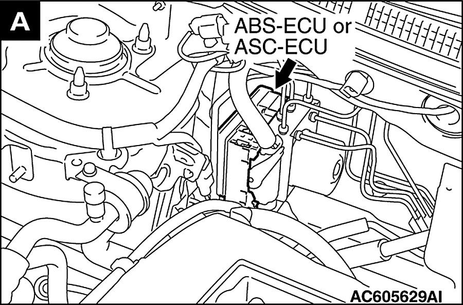 | ASC-ECU | Right Rear Of Engine Compartment. See Figure. |