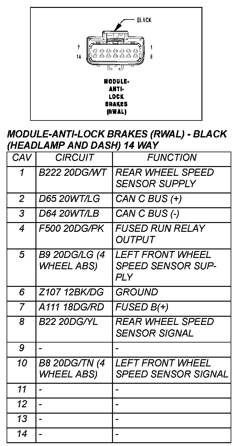 Module - Anti-Lock Brakes (RWAL) - Black (Headlamp And Dash) 14 Way:
