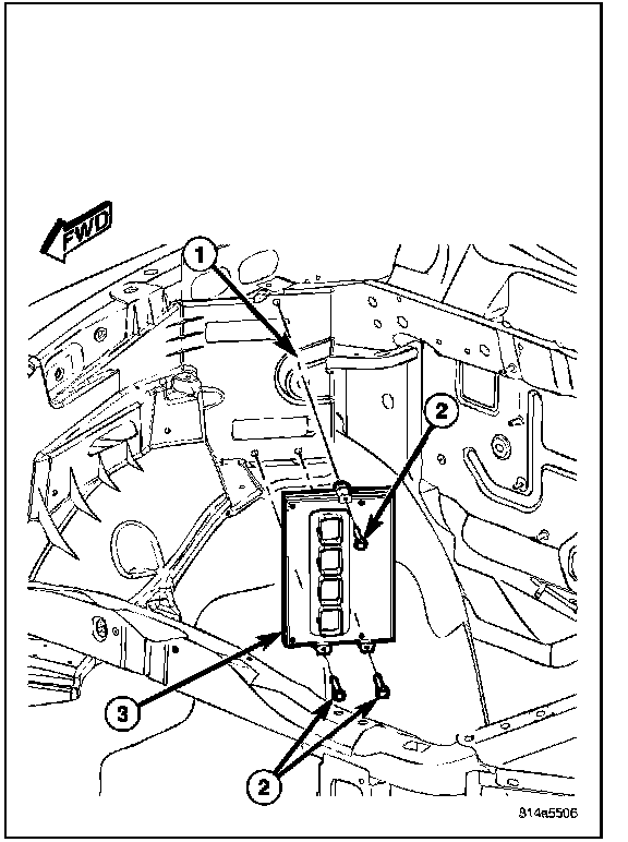 2. Install three PCM mounting bolts (2).