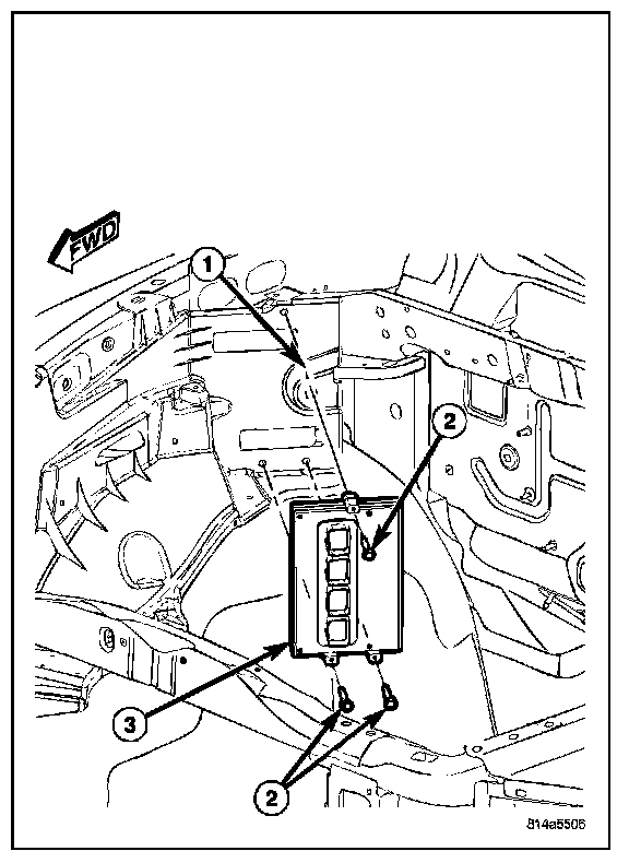 1. Position PCM (3) to vehicle.