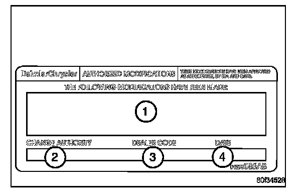 18. Type the necessary information on the "Authorized Modification Label" p/n 04275086AB and attach near the VECI label.