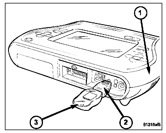 8. With the StarSCAN(R) or equivalent powered OFF, connect the USB Key and Gender Changer to the StarSCAN(R) or equivalent USB port.