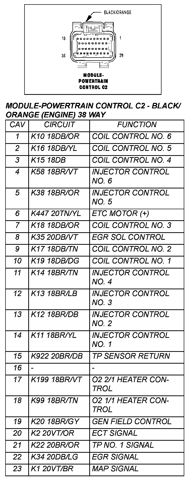 Module - Powertrain Control C2 - Black/Orange (Engine) 38 Way (Part 2):