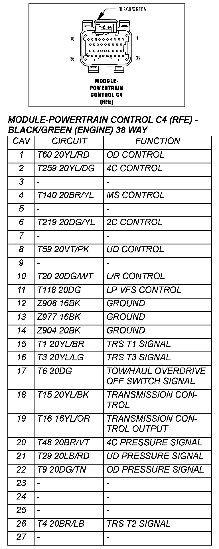 Module - Powertrain Control C4 (REF) - Black/Green (Engine) 38 Way (Part 2):