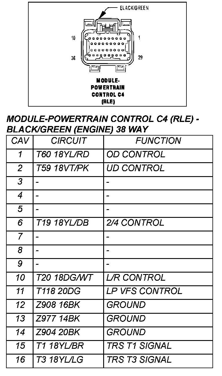 Module - Powertrain Control C4 (RLE) - Black/Green (Engine) 38 Way (Part 2):
