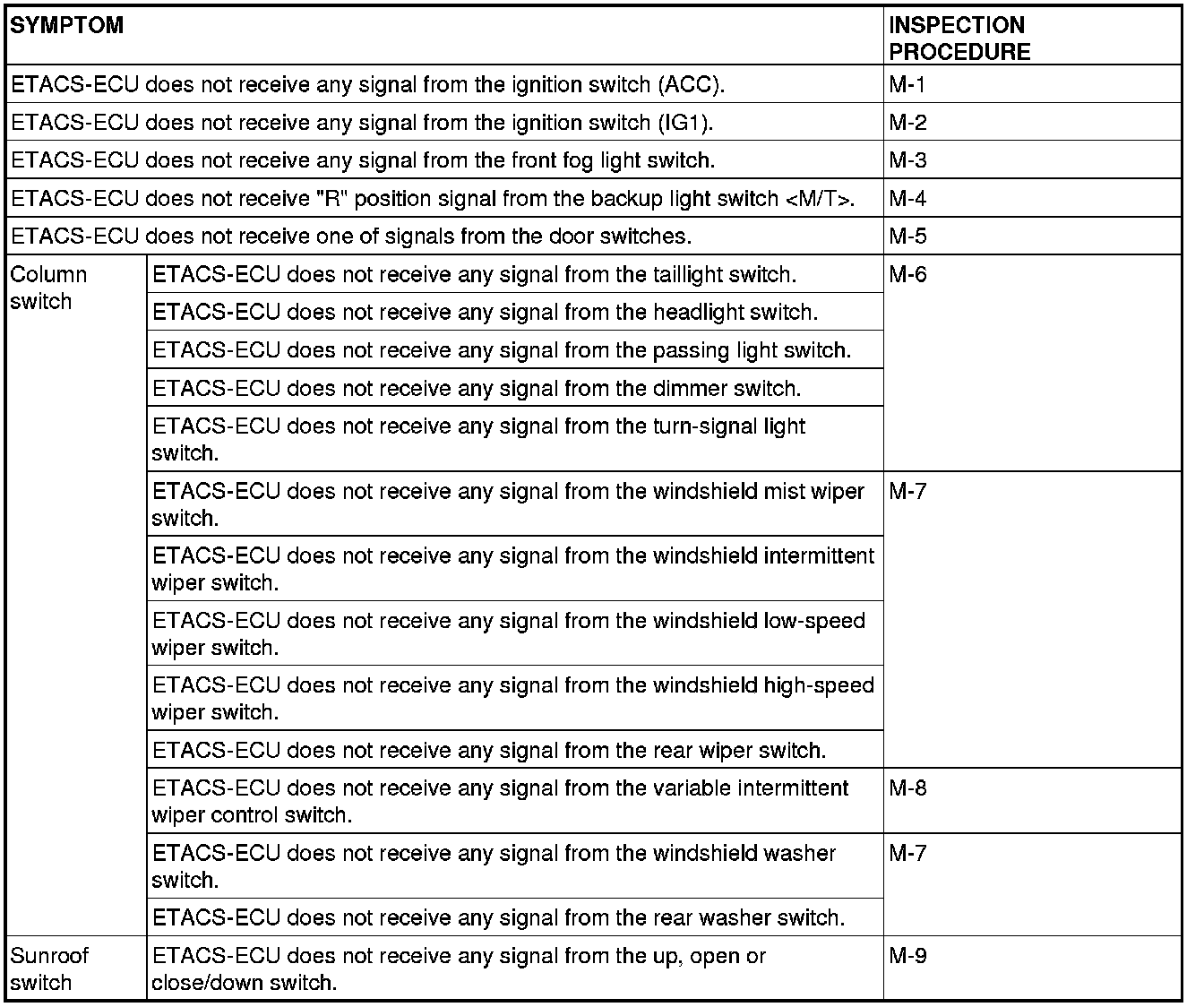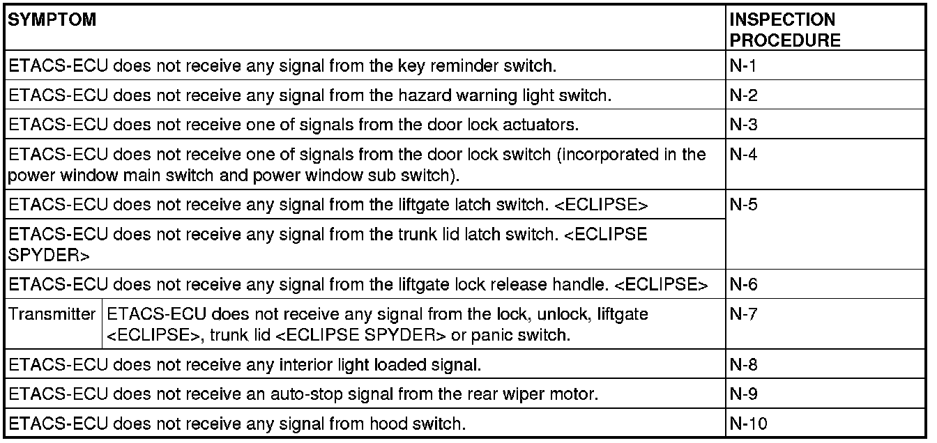 If a problem is found in the Data List inspection, observe the table below.