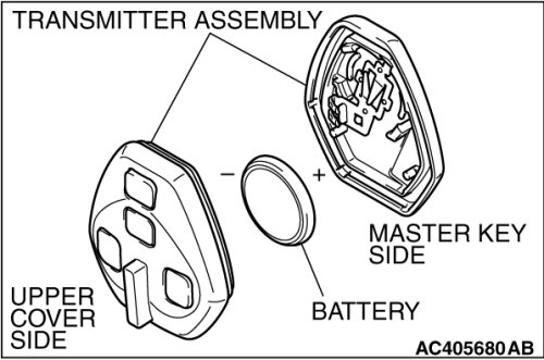 Home >> Mitsubishi >> 2011 >> Eclipse L4-2.4L (4G69) >> Repair and Diagnosis >> Body and Frame >> Locks >> Keyless Entry >> Keyless Entry Transmitter >> Service and Repair