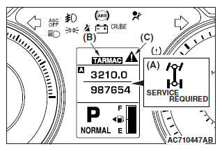 If the indicator (C) continues to be displayed on the information screen of multi information display, check the diagnostic trouble code that is set.
