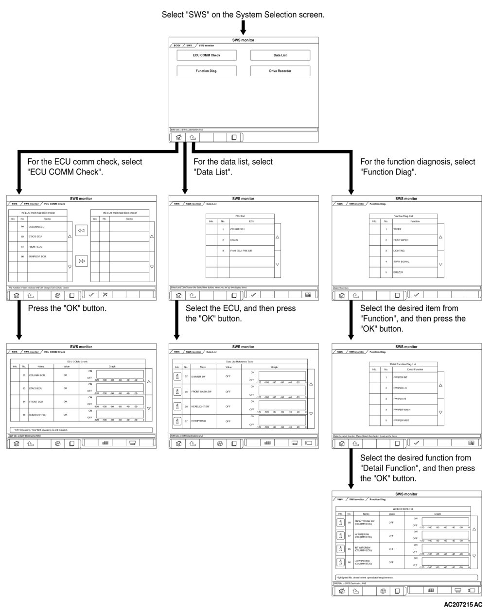 To carry out troubleshooting, operate scan tool MB991958 (M.U.T.-III Sub Assembly) as follows.