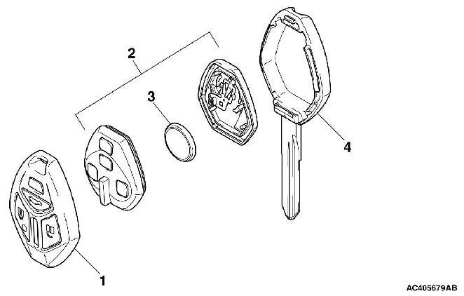 Home >> Mitsubishi >> 2012 >> Eclipse L4-2.4L (4G69) >> Repair and Diagnosis >> Body and Frame >> Locks >> Keyless Entry >> Keyless Entry Transmitter >> Service and Repair
