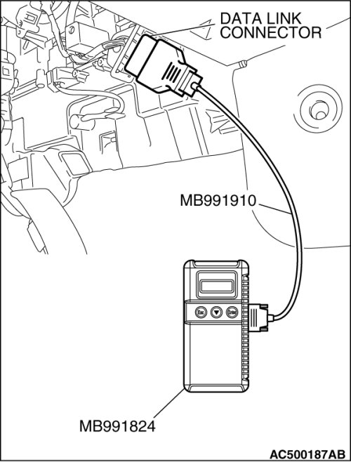 Connect special tool MB991824 (V.C.I.) to the data link connector.