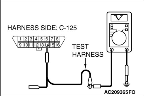 (1)Disconnect ECM [M/T] or PCM [A/T] connector B-18 and combination meter connector C-04, and measure the voltage at the harness side of data link connector C-125.