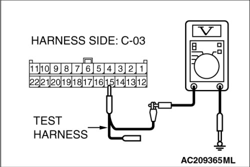 (1)Disconnect intermediate connector C-24 [ECLIPSE] or C-23 [ECLIPSE SPYDER], and measure the voltage at the male side (at front wiring harness side [ECLIPSE] or floor wiring harness side [ECLIPSE SPYDER]).