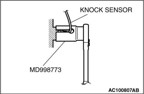 Use special tool MD998773 to tighten the knock sensor to the specified torque in the same manner as removal.
