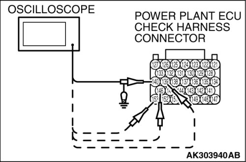 3. Connect the oscilloscope to check harness terminal No. 103. (Check the crankshaft position sensor signal wave pattern.)