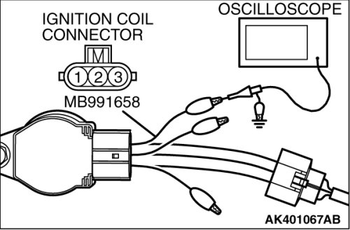 10. Connect the oscilloscope probe to ignition coil connector terminal No. 3.