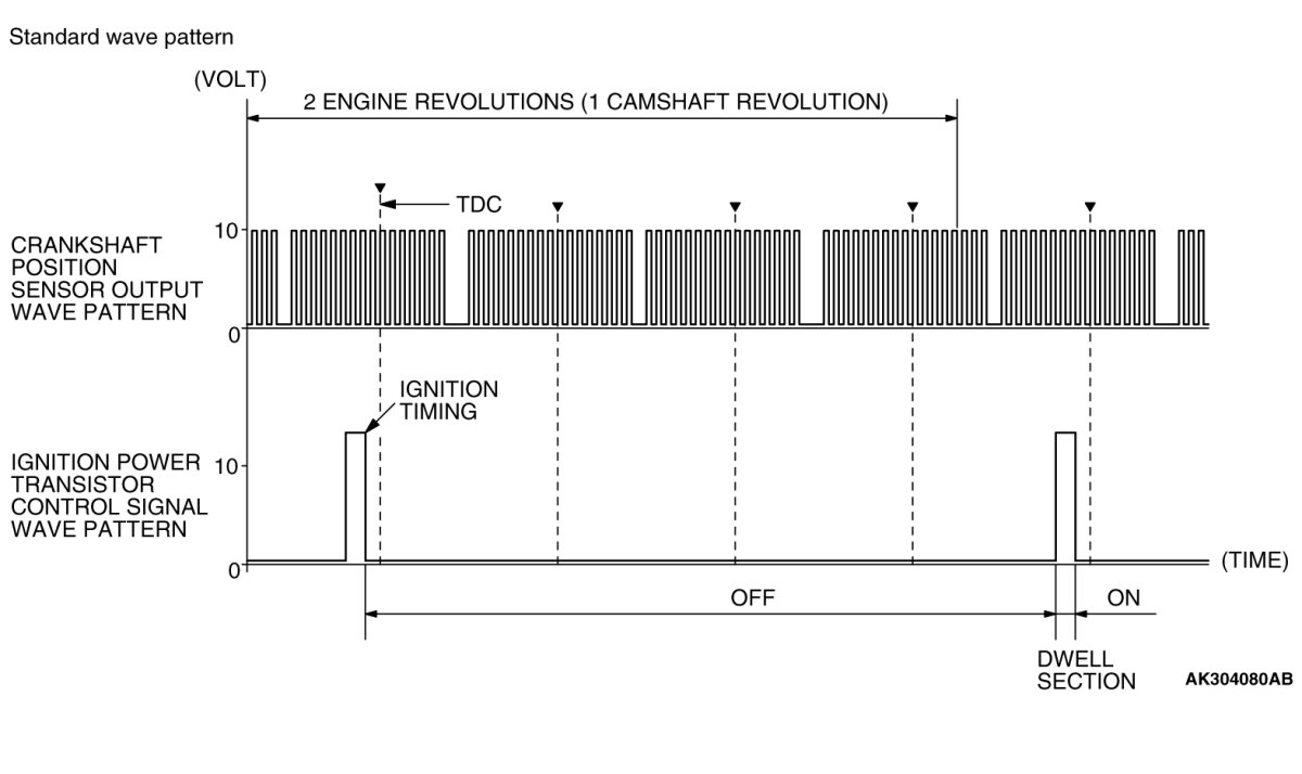 Point: The power transistor control signal (ignition timing) is advanced when the engine speed is increased.