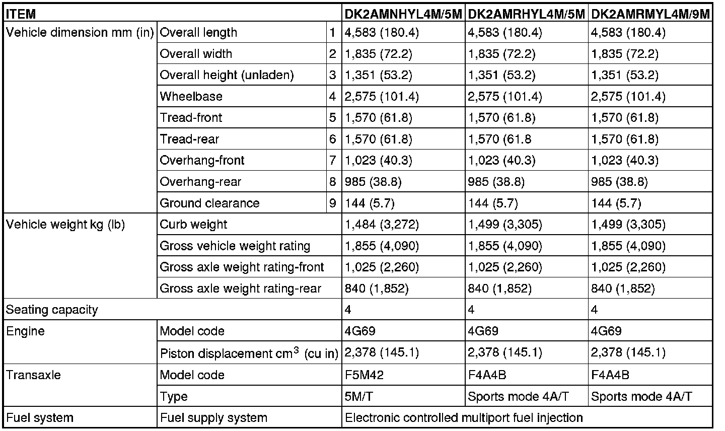 GENERAL SPECIFICATIONS (2.4L ENGINE)