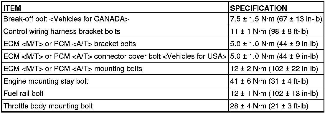 FASTENER TIGHTENING SPECIFICATIONS