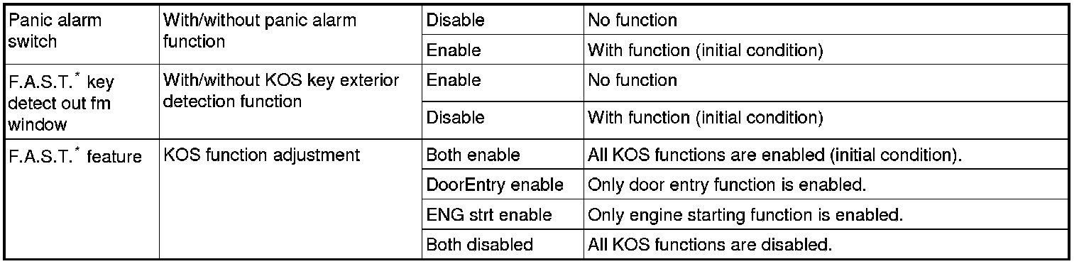 By operating the ETACS system or MMCS of scan tool MB991958, the following functions can be programmed. The programmed information is held even when the battery is disconnected.