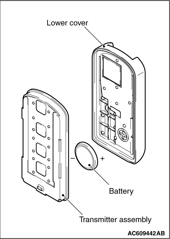 Home >> Mitsubishi >> 2012 >> Lancer AWD L4-2.4L (4B12) >> Repair and Diagnosis >> Body and Frame >> Locks >> Keyless Entry >> Keyless Entry Transmitter >> Service and Repair >> Keyless Operation System (KOS)