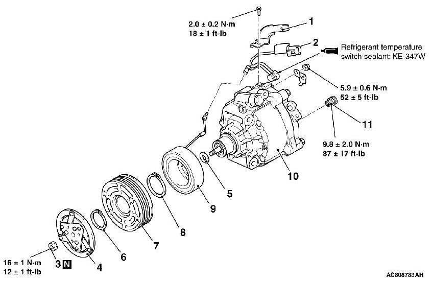 Home >> Mitsubishi >> 2012 >> Lancer AWD L4-2.4L (4B12) >> Repair and Diagnosis >> Heating and Air Conditioning >> Compressor HVAC >> Service and Repair >> Overhaul >> Compressor Assembly Disassembly and Assembly