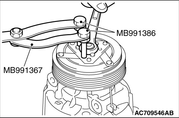 - Be sure to use the guide (MB992623) when the side bearing puller (MB990810) is used to prevent the damage of A/C compressor.