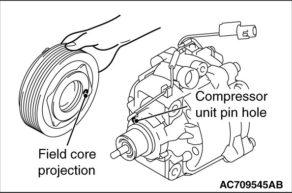Line up the pin hole on the compressor unit with the field core projection and attach.